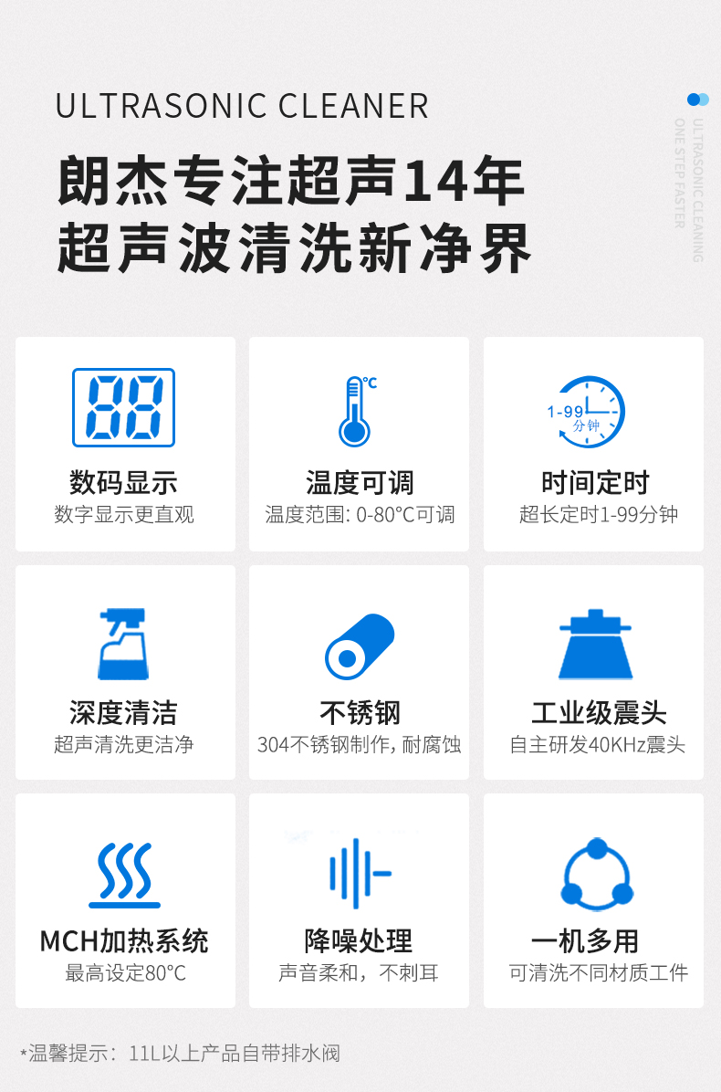 11L 240W单频,数码显示,时间可调,温度可调 UC-4000系列超声波清洗机