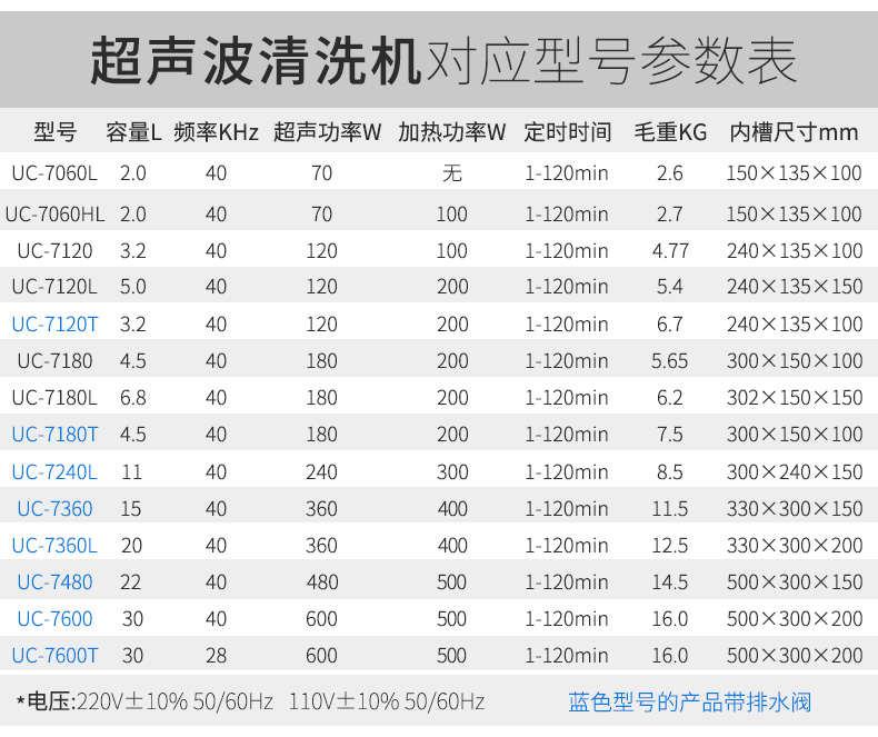 单频,旋转开关,时间可调,脱气模式UC-7000系列超声波清洗机