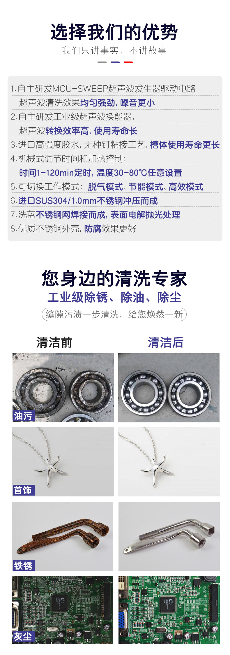 6.8L 180W单频,液晶显示,脱气功能,功率可调UC-9000系列超声波清洗机...