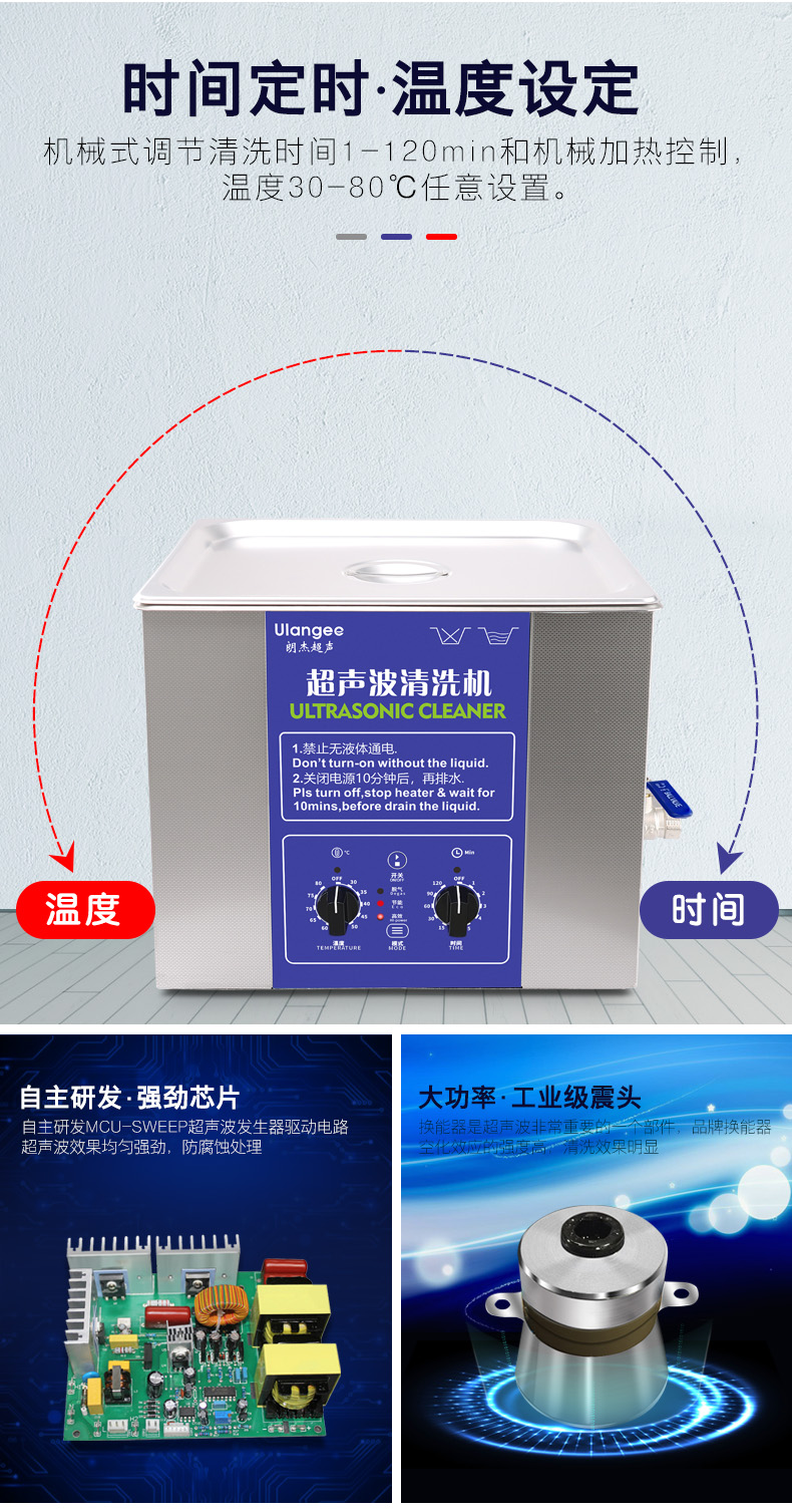 超声波清洗机UC-7000系列,带脱气功能,旋转开关机械式调节时间和加热控制,1-120min内时间可调,满足您的不同清洗需求