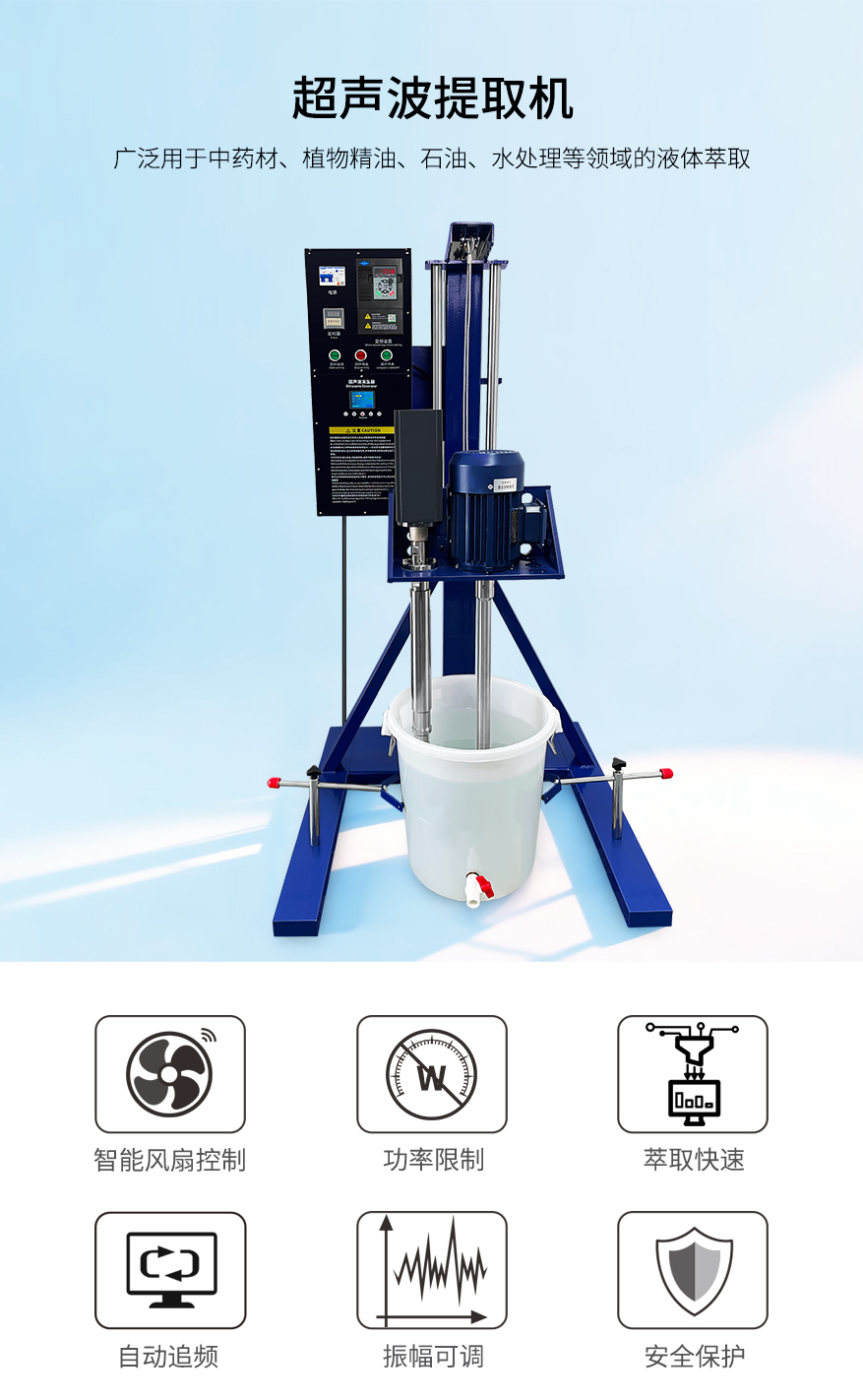 超声波萃取仪广泛应用于中药材、植物精油、石油、水处理等领域的液体萃取。